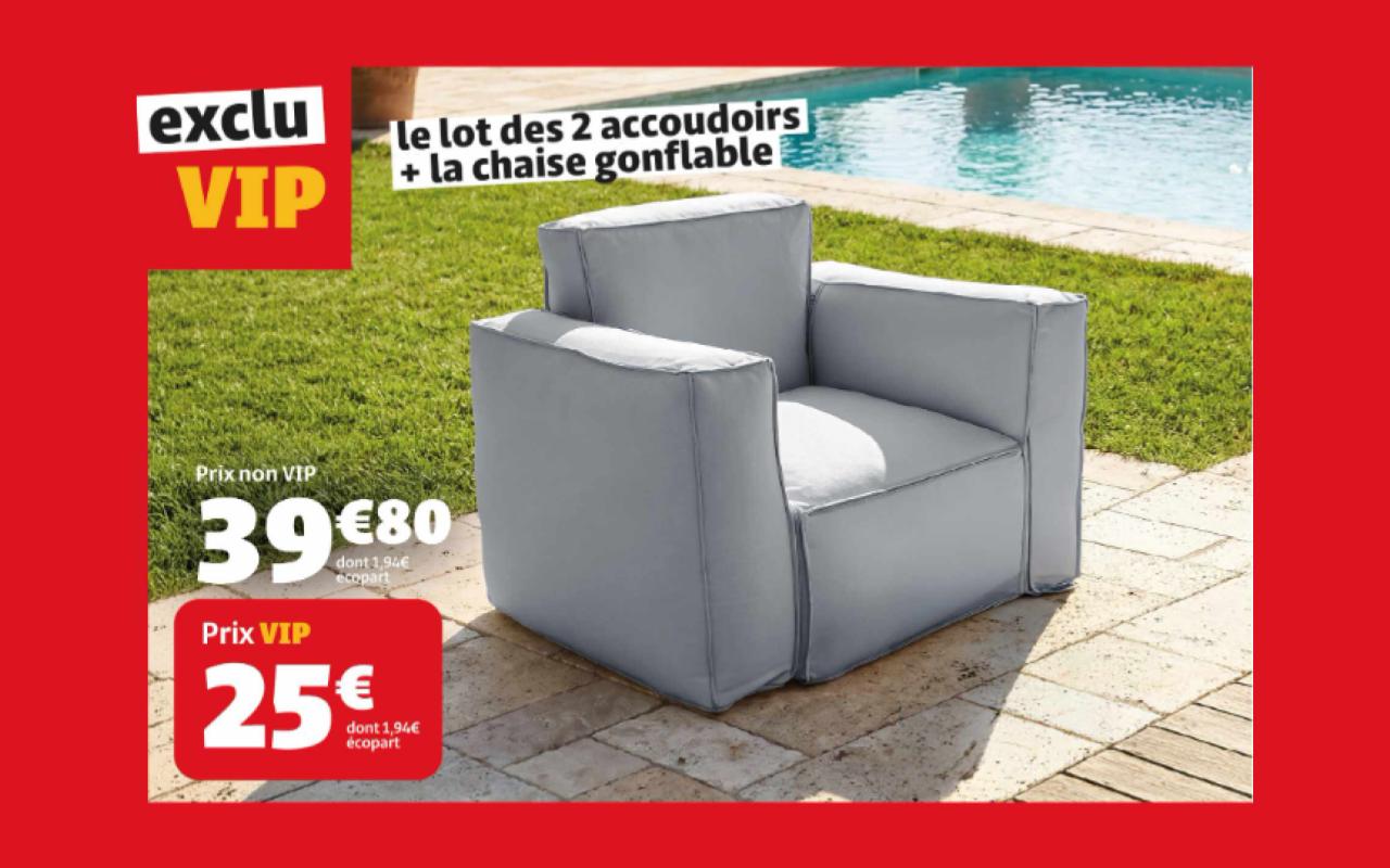 Le lot des 2 accoudoirs + la chaise gonflable à 25€ au lieu 39,80€*